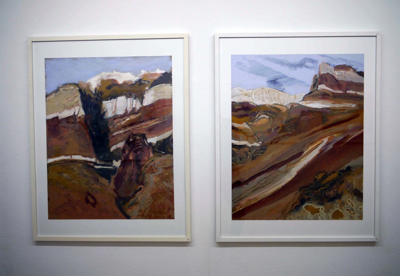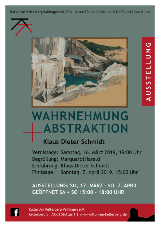 Zunächst sind es Erinnerungen an Urlaube und Reisen, die dann jedoch durch den Einsatz verschiedener Techniken Gestalt gewinnen: Mal konkret, mal abstrakt. Berg- und Wüstenbilder sind dabei die bevorzugten Motive. Klaus-Dieter Schmidt beschreibt seine Arbeitsweise wie folgt:“ Im Arbeitsprozess konkretisiert sich schließlich ein landschaftlicher Eindruck, den ich mit Pinsel und Feder weiterbetreibe, bis er sich mit meiner Erinnerung an Gletscher oder wüstenartige Errosionslandschaften deckt“. Die in der Ausstellung von Kultur Am Kelterberg Vaihingen e.V. gezeigten Werke sind entweder direkt vor Ort entstanden oder im Atelier aufgrund von Skizzen, Fotos oder Erinnerungen.