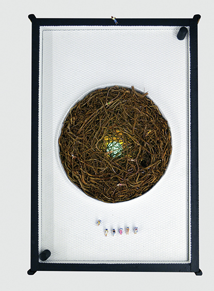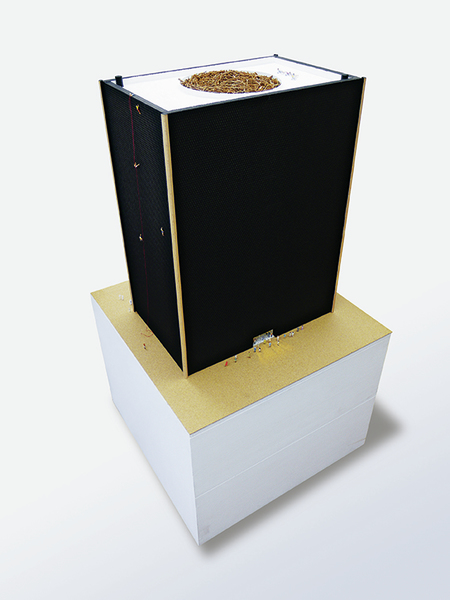 in das Innere des Monuments, um dort scheinbar die Geschichte erraten zu können. Trotz der Ahnung, dass es hier um eine abgründige Utopie geht, löst die Arbeit durch ihre sorgfältig gewählte Materialität und die präzise Umsetzungein heiteres Gefühl aus. Sie bietet einen eigenen Kosmos an, in dem man gedanklich spazieren gehen kann und der trotz vielfältiger Verweise weder beliebig wirkt noch die Phantasie beschränkt. Die Arbeit redet nicht über Zauberei, sie verzaubert selbst.