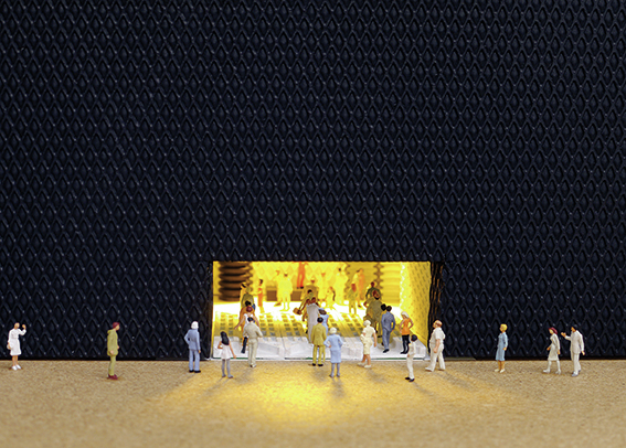 Die Siegerarbeit fällt durch ihre schiere Monumentalität auf, zugleich erzählt sie eine vielschichtige, letztlich unergründliche Geschichte. Die kleinen Figuren ziehen den Betrachter