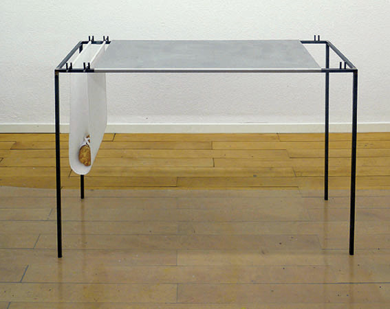 Zustände. Wenn man das am Ende des Tisches eingehängte Tuch emporzieht und über die Fläche spannt, kommt ein Brötchen zum Vorschein. Die leere Metallplatte verwandelt sich in ein Stillleben mit der in Schwaben verbreiteten Seele, die ihren Namen wahrscheinlich dem Brauch verdankt, dass zu Allerseelen nicht nur der Toten gedacht, sondern auch Brot an die Armen verschenkt wurde.