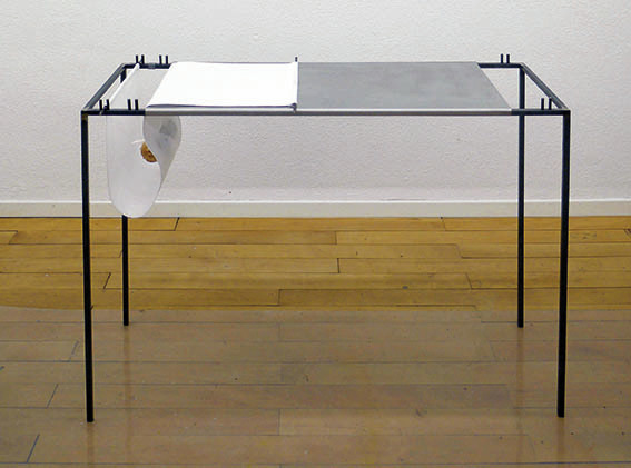 Metallgestell, das sich als Esstisch, Skulpturensockel und Seziertisch