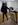 Formen und Farben die assoziative Deutungsmöglichkeit einerpferdeähnlichen Tierfigur wahrnehmen, die in fragmentarischer Auflösung begriffen erscheint, domestiziert von einem Seiltänzer im Hintergrund. Wohl eine sinnliche Metapher für die eigene Lebenswirklichkeit.