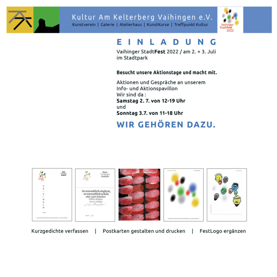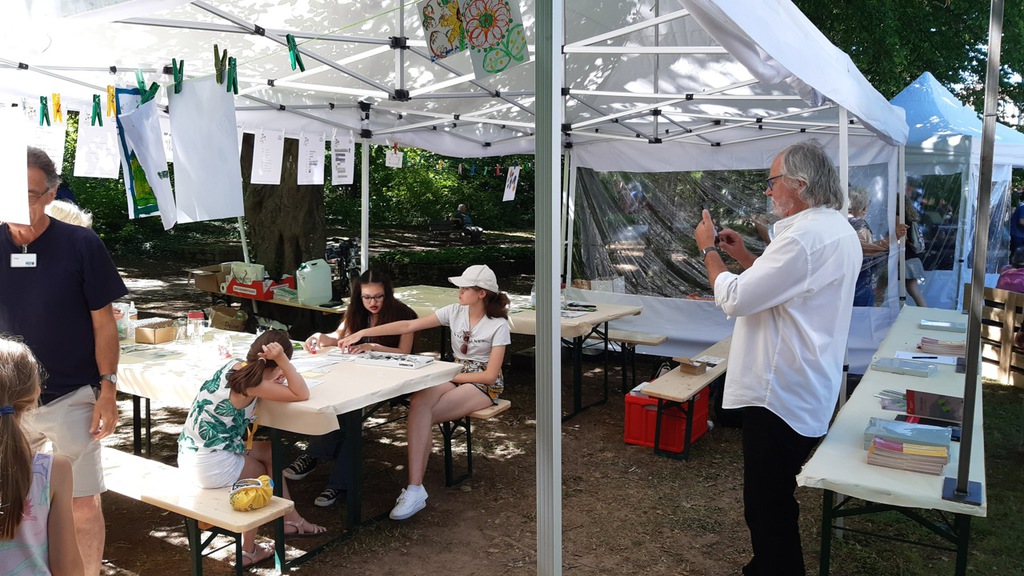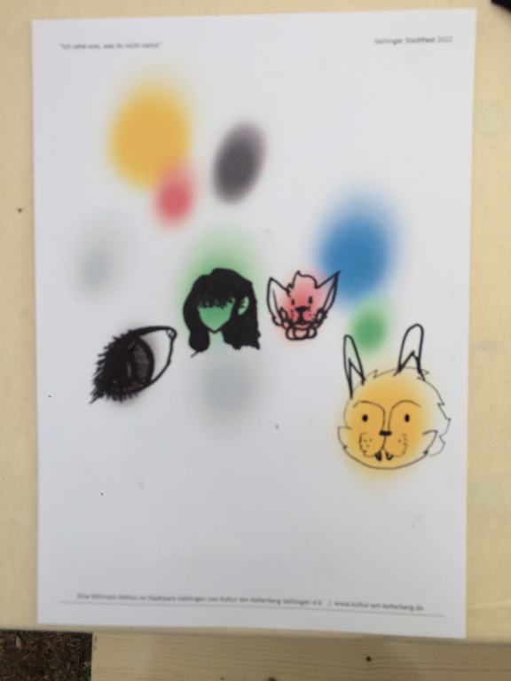 Alle Arbeiten konnten nach Fertigstellung von den Urhebern gleich mitgenommen werden. Die Fotos zeigen einige Impressionen zu unseren Aktionen und dem gelungenen 1. Vaihinger StadtFest 2022 im wunderbaren Vaihinger Stadtpark.