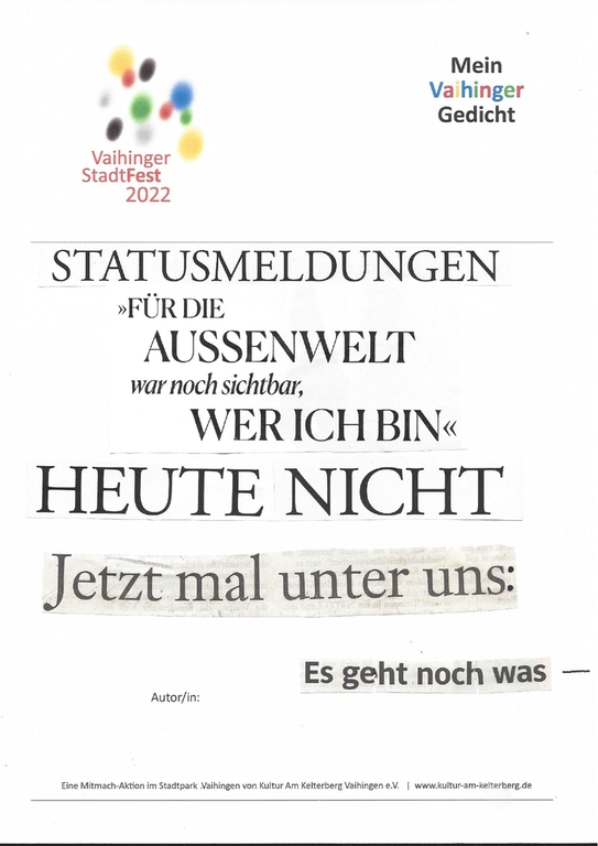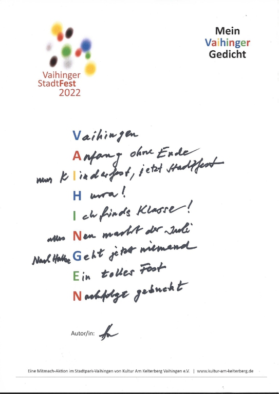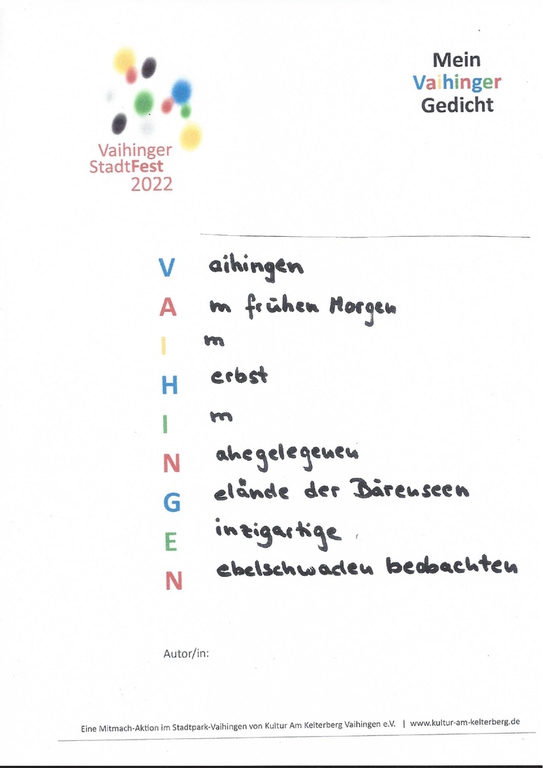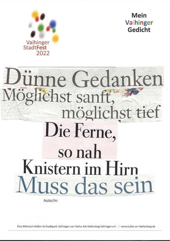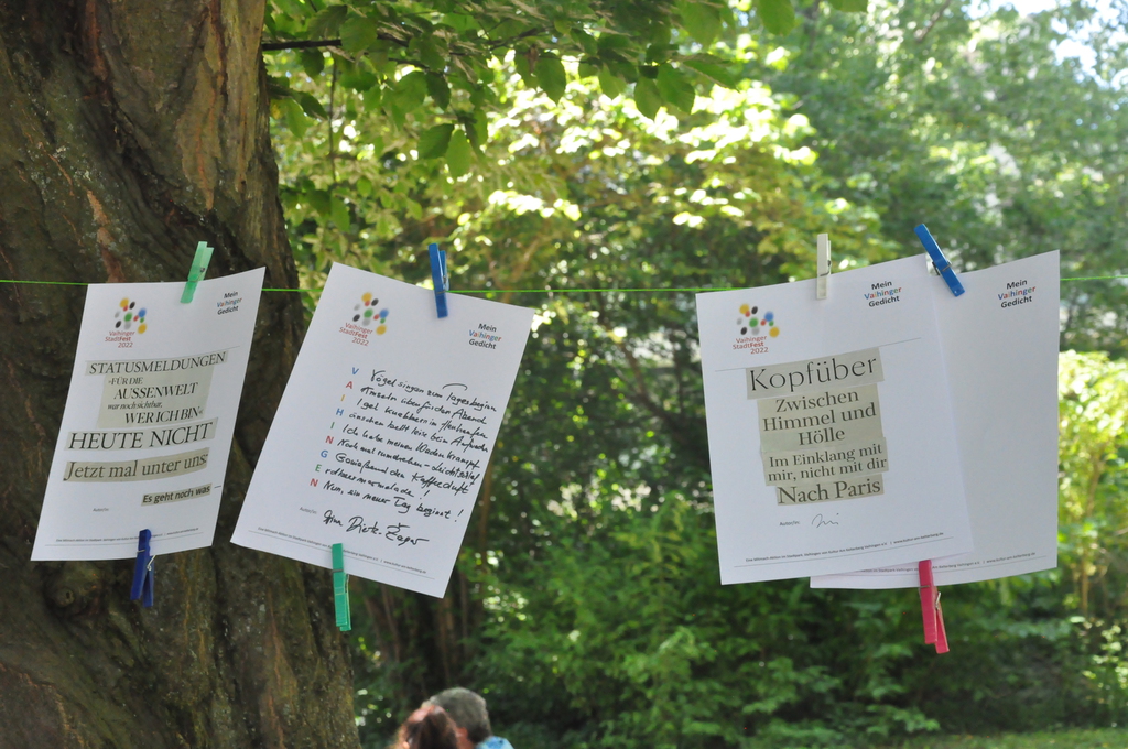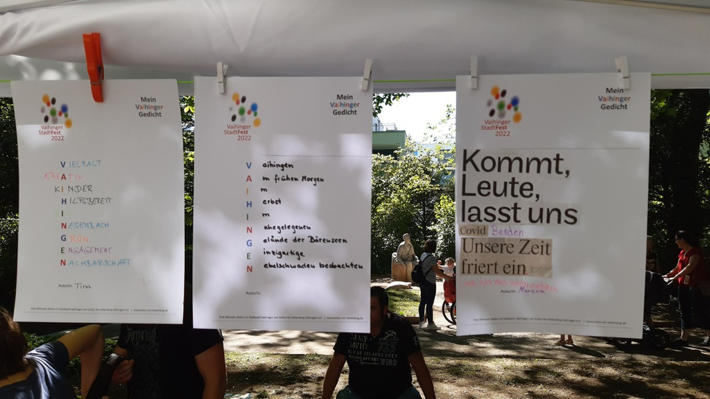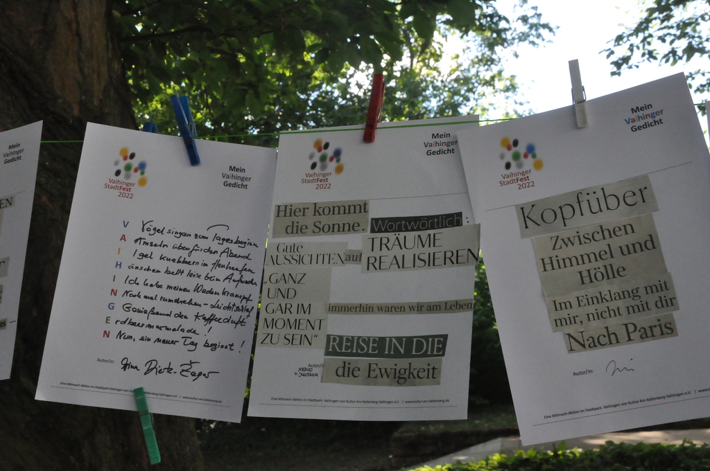Es wurden „Vaihinger Gedichte“ von Besucherinnen und Besuchern in Form von Kurzgedichten verfasst und zu Papier gebracht.