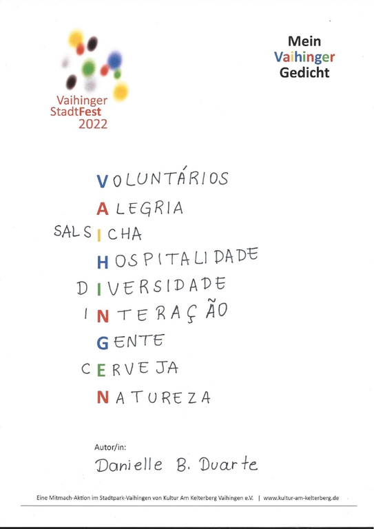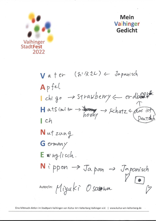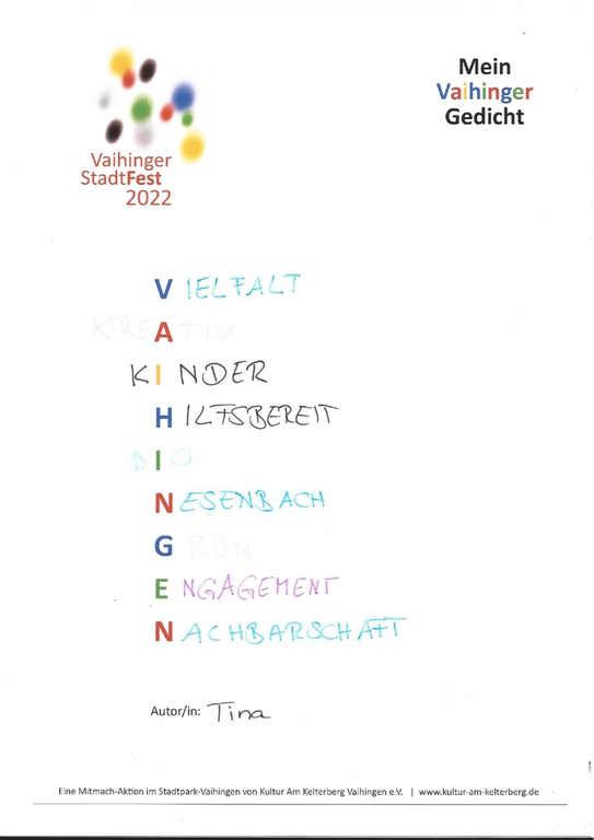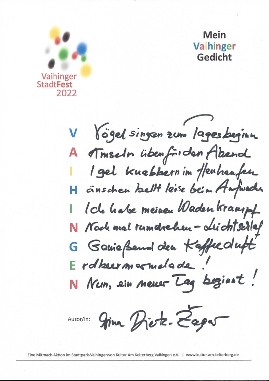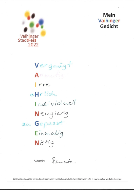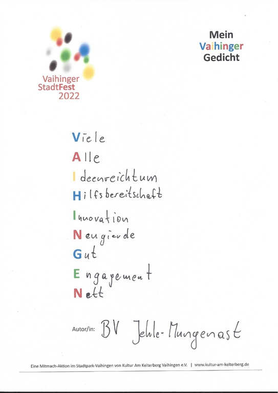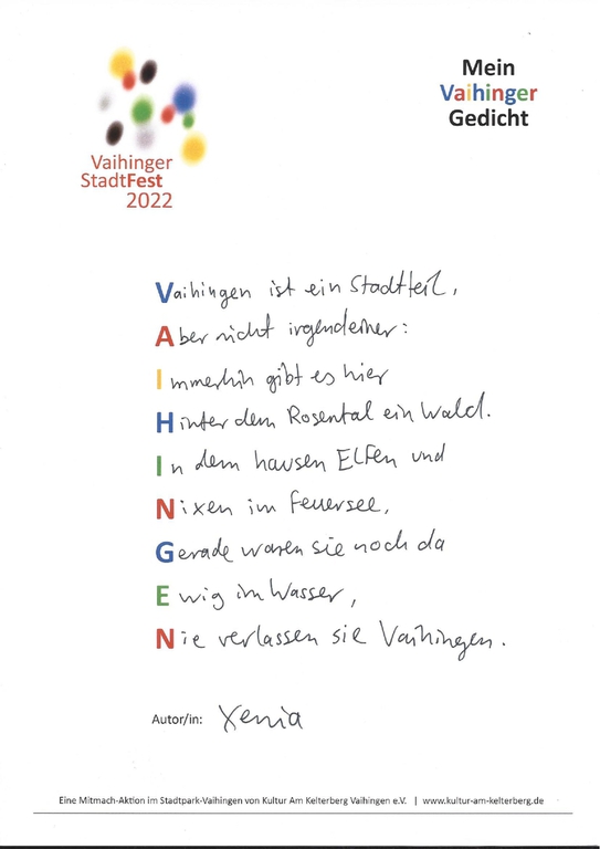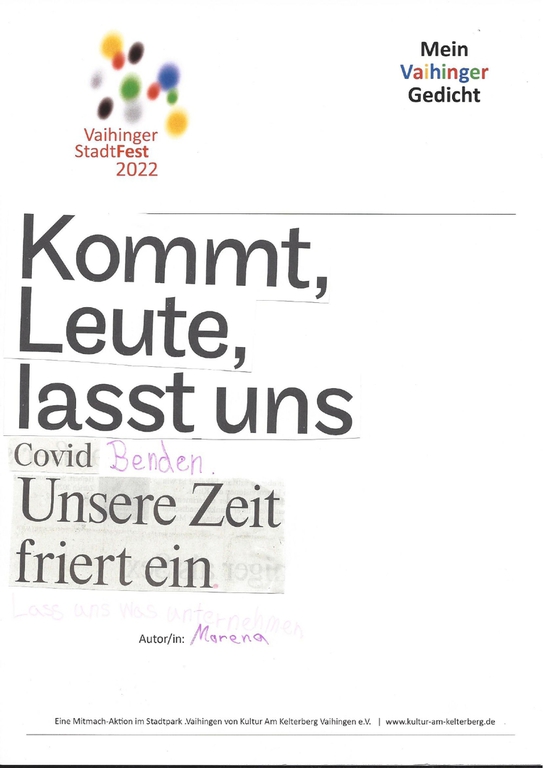 Es wurden „Vaihinger Gedichte“ von Besucherinnen und Besuchern in Form von Kurzgedichten verfasst und zu Papier gebracht.