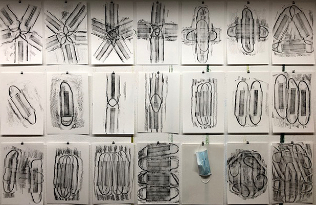 Die dabei entstandenen Papiervorlagen habe ich direkt für das zweite Bild „Maskenbild#2“ verwendet.