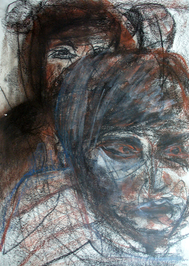 Acrylfarbe und Kohle