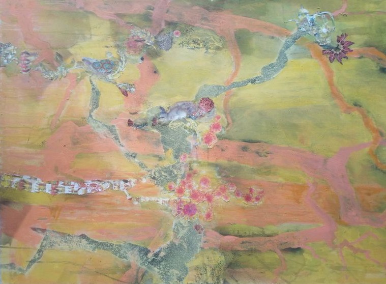 Acryl, (mein) Blut, Sisal & Mixed Media auf Malplatte