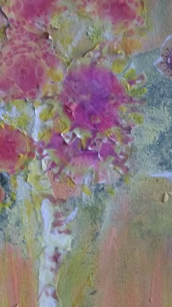 Decoupage auf alter Recycling-Holzplatte mit Rahmen. Der Rahmen wurde mit Antikwachs/Farben behandelt und im "schäbigen" Zustand belassen. Das Bild wurde mit bis zu 30 Schichten lackiert. Der Hintergrund wurde mit einem handgeschöpften Papier aus Nepal erstellt. 124 x 64 cm